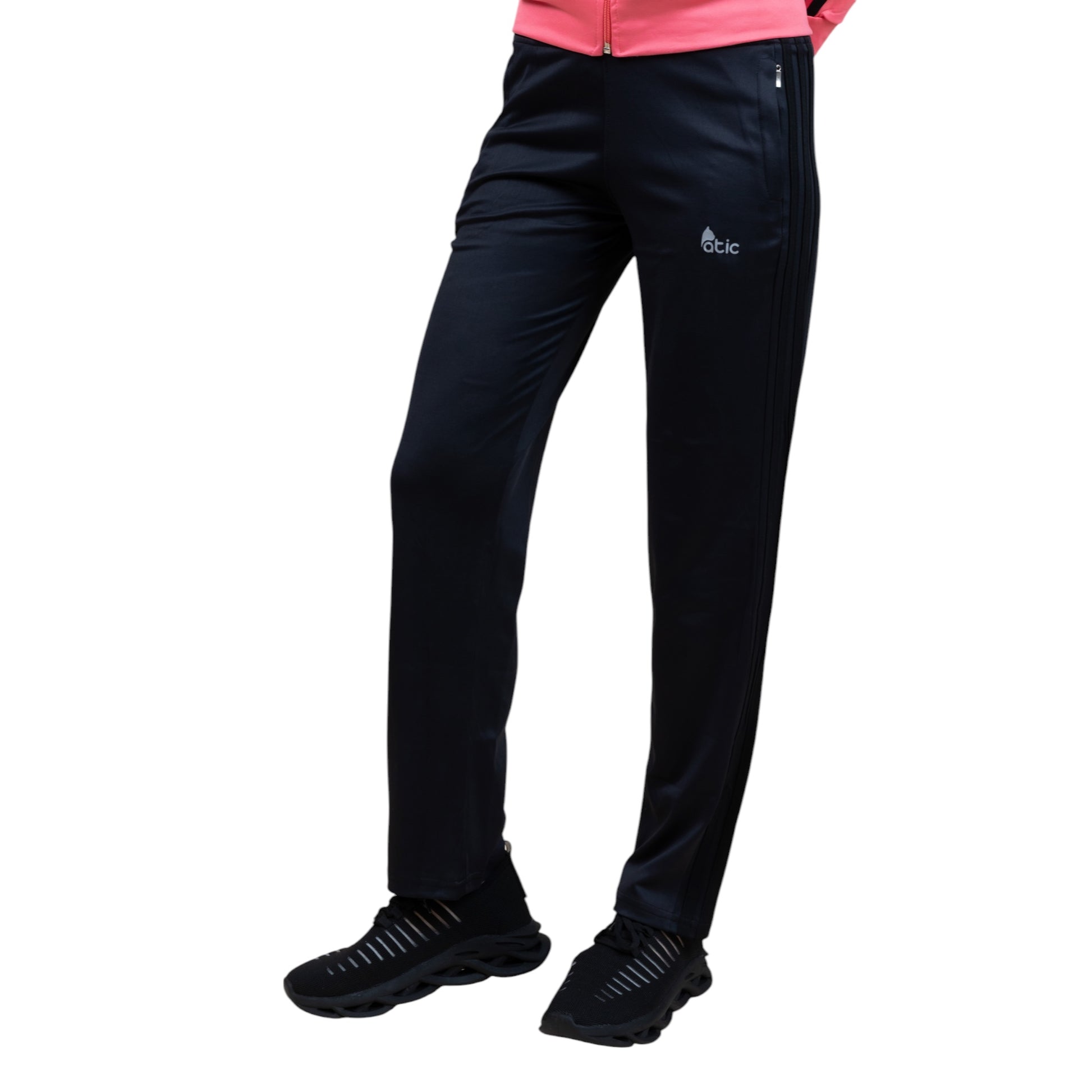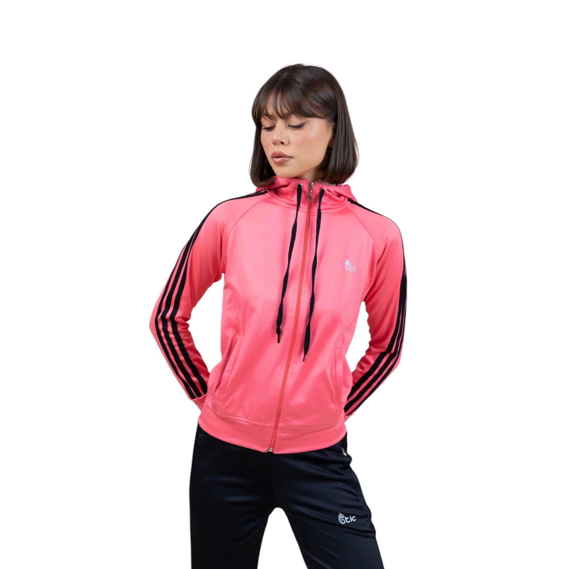 Atic Cep Fermuarlı Yakalı Çizgili Rahat Paça Dalgıç Kumaş Esnek Kumaş Bayan Eşofman Takımı