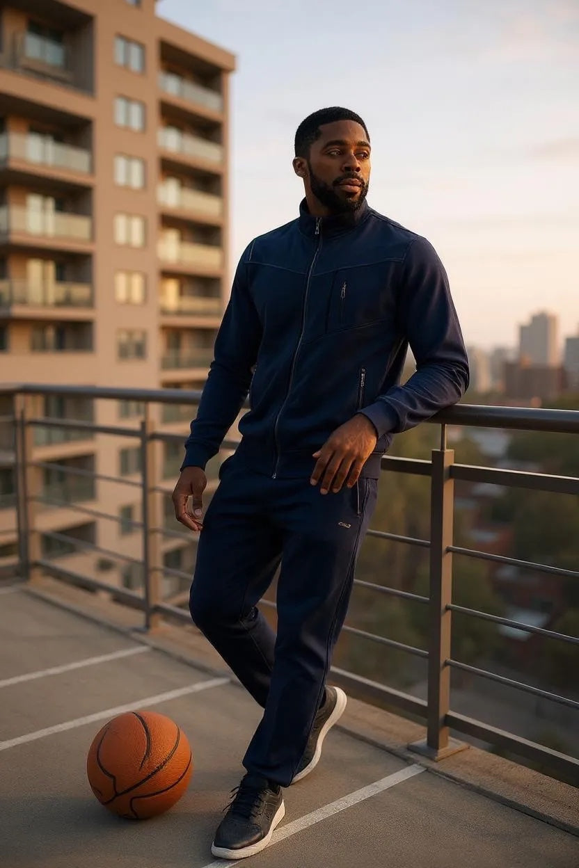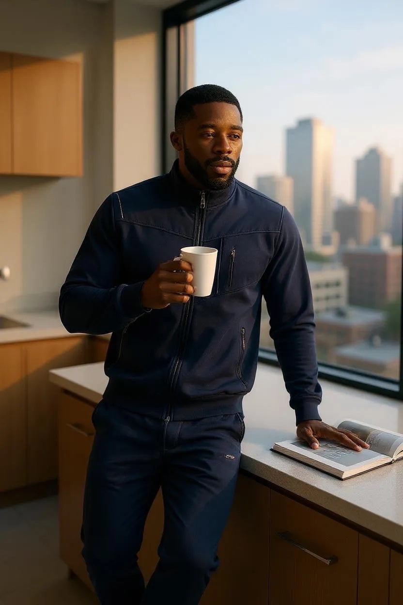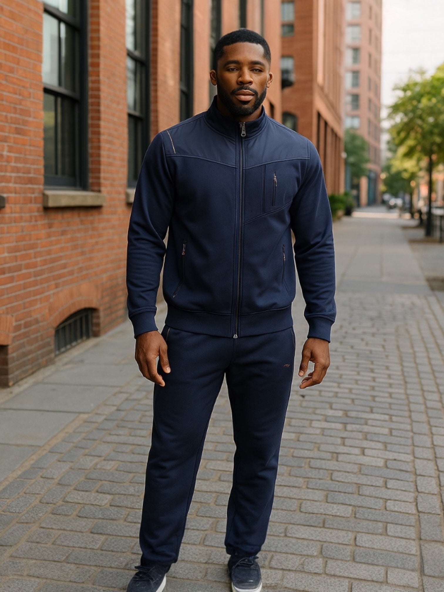 Erkek Likralı Compact Penye Eşofman Takımı – Dik Yaka, Fermuarlı, Kapüşonsuz